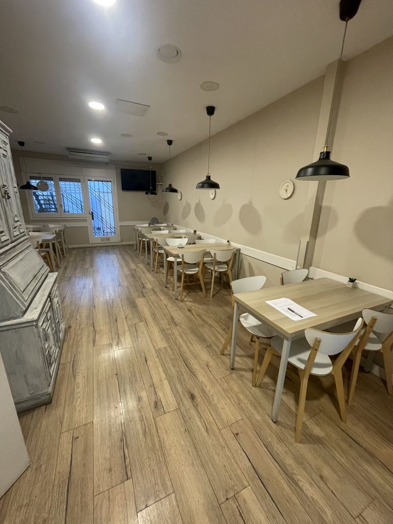 La ubicación es su mayor activo. Situado a pocos pasos del transporte público y, lo más importante, rodeado de colegios. Esto garantiza un flujo constante de clientes en franjas horarias clave: desayunos, cafés de media mañana para padres y profesores, menús de mediodía y el horario de salida escolar.